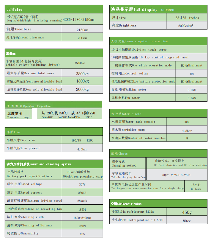 JC-DEV8240 多媒體掃路機(jī)配置有全景玻璃結(jié)構(gòu)的駕駛室,舒適冷暖空調(diào)、安全警示工作燈、10.2寸超大觸摸屏、 一鍵操作按鈕、行車(chē) 和倒車(chē)雙錄高清行車(chē)儀 。70kwh 的超大容量電池組65寸大液晶顯示屏 ;掃刷轉(zhuǎn)速采用手柄式速度調(diào)節(jié)閥控制,可以根據(jù)道路實(shí)際路況控制無(wú)級(jí)調(diào)速 ;清掃掃刷位置和吸風(fēng)口位置采用水霧噴淋裝置,確保在清潔過(guò)程中不會(huì)產(chǎn)生揚(yáng)塵造成二次污染 ;該機(jī)掃刷寬度有調(diào)節(jié)功能,可由1.6米調(diào)節(jié)至2.4米,廣泛適用于城市非機(jī)動(dòng)車(chē)道、城市廣場(chǎng)、公園、體育場(chǎng)館、會(huì)展中心等場(chǎng)所的清掃作業(yè)。